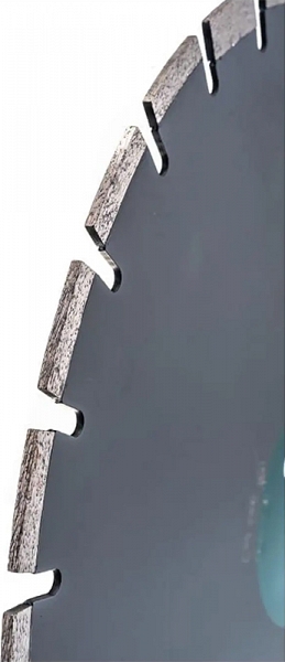- Лазерная сварка сегментов с корпусом: алмазные сегменты закреплены на диске методом лазерной сварки, что позволяет использовать диск, как с подачей воды так и в сухую: мокрый и сухой рез (возможна работа без подачи воды)