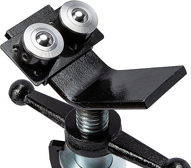 Двойной ролик для трубных опор Rotorica 18 мм (Роторика 18 мм) на скользящей площадке устанавливается с 2-х сторон V-образной опоры трубных стоек и фиксируются барашковым винтом. Направляющий ролик используется для снижения момента трения с возможностью приложения минимальных усилий при перемещении по опоре или вращении труб. Для подстройки под диаметр трубы площадка с роликами имеет возможность перемещения и фиксации в необходимом положении. Как правило, трубная опора используется совместно с резьбонарезными станками, желобонакатчиками, электрическими труборезами и т.д.
