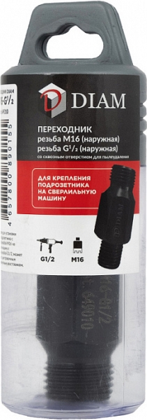 Переходник для подрозетников Diam M16 папа-G1/2" папа (Диам М16 папа-Г1/2" папа) – адаптер для установки коронок для подрозетников с внутренней резьбой М16 на дрели и установки алмазного бурения с внутренней резьбой G1/2".
