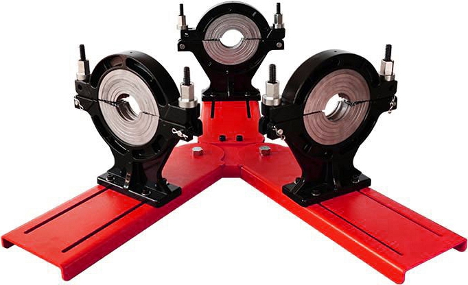 Позиционер для электромуфтовой сварки тройников Gas Fusion 90-315 мм (Газ Фьюжин 90-315 мм) используется для фиксации полиэтиленовых (пэ, пнд) труб, отводов и тройников Ø 90 – 315 мм при электромуфтовой сварке.