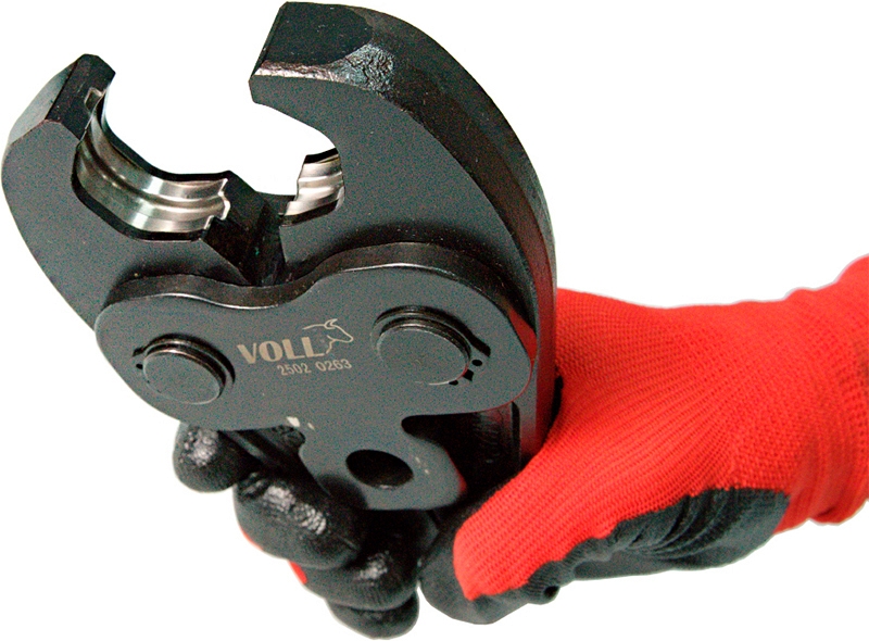 Пресс-клещи Voll M 28 (Волл М 28) предназначены для радиального обжима (радиальной опрессовки) фитингов на медных, тонкостенных стальных, нержавеющих стальных трубах Ø 28 мм аккумуляторным гидравлическим радиальным пресс-инструментом для обжима фитингов Voll V-Press.