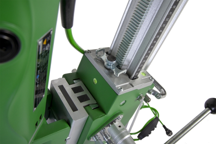 - Скорость подачи каретки: установлена регулировка скорости 1:2, чтобы сохранить больше силы; дополнительное место для крепления кривошипной рукоятки; двухскоростной редуктор подачи для снижения скорости и усилия значительно облегчает работу оператора при сверлении отверстий большого диаметра – малообслуживаемая направляющая каретки с легким ходом