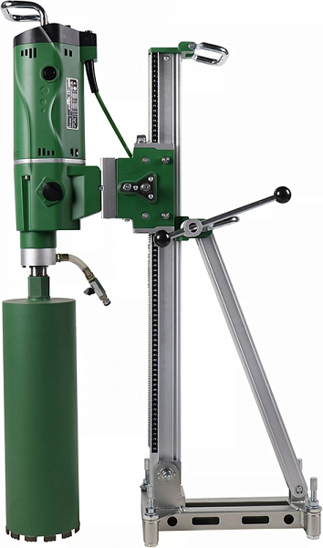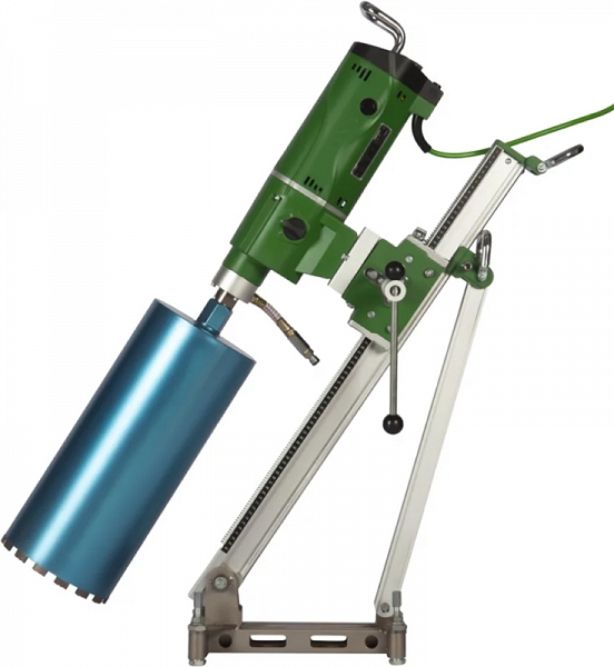 Установка алмазного бурения Bycon Pro-250 (Байкон Про-250) предназначена для сверления отверстий Ø до 252 мм в бетоне, железобетоне, кирпиче, камне и других материалах, под углом до 45°, с подачей воды, для профессионального использования.